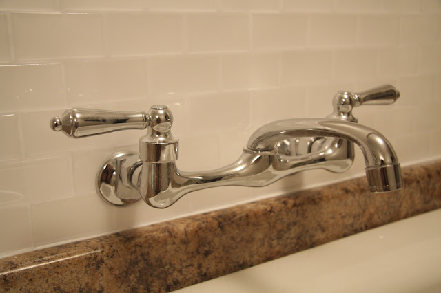 If you take a really close look at the picture above, you'll see a little more bling in upper right-hand corner. Yes, the faucet and backsplash have finally been installed!